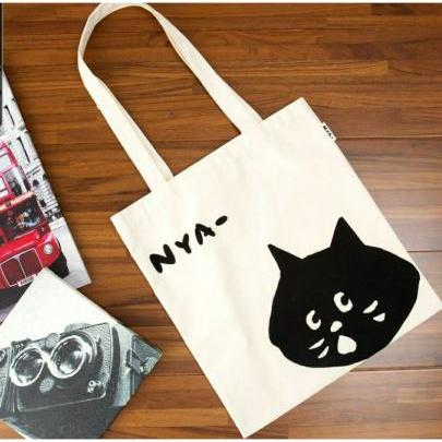 全新 日本 NYA 小黑貓 帆布包 米白色 玩色隨興帆布提袋 環保袋 購物袋 帆布袋