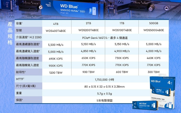 全新 現貨 含發票 WD SN5000 SN5100 500GB 1TB NVMe M.2 PCIe 4.0 固態硬碟