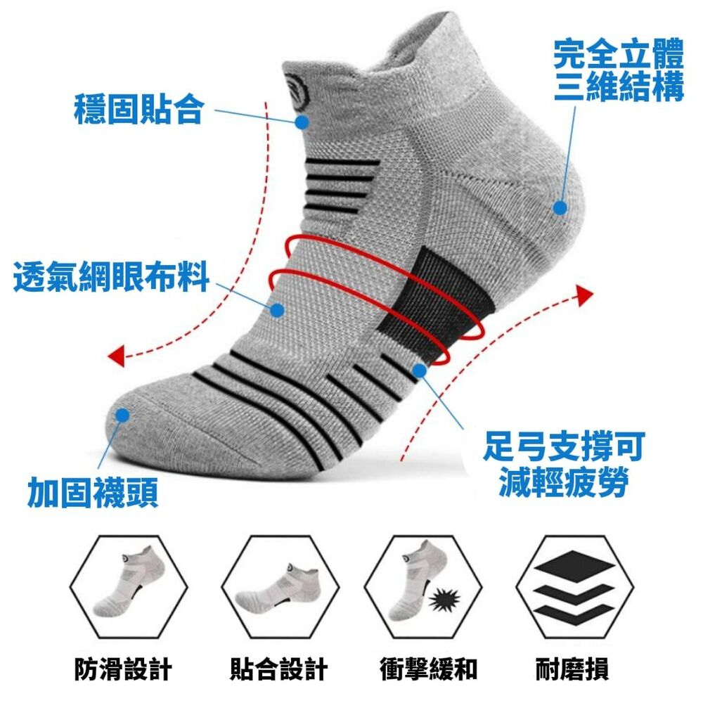 【快乾、吸濕排汗、抗菌】網眼加工提供優異的透氣性,防止悶熱。它們吸收汗水並快速乾燥!保持雙腳清潔無異味。