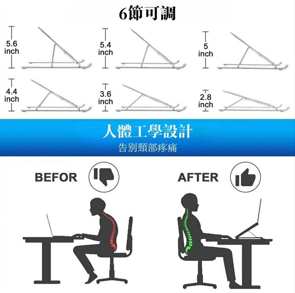 這款鋁合金筆電支架是您辦公、學習的最佳夥伴,讓工作效率提升,舒適健康生活隨時隨地。選擇我們的產品,為您的筆電提供全方位的支援!