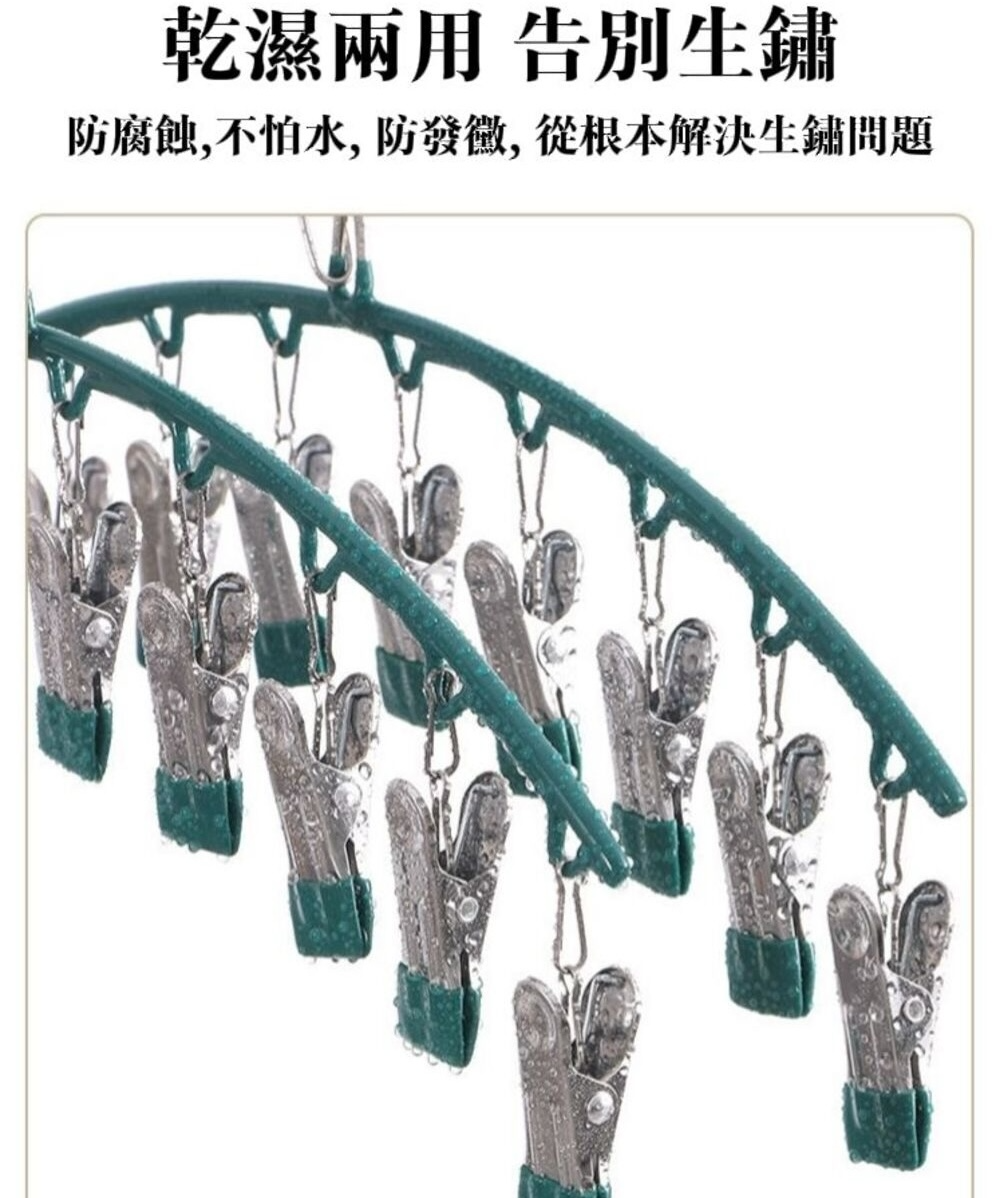 配有多個夾子,適合晾曬襪子、內衣褲等小件衣物,也能用於晾曬嬰兒衣物。