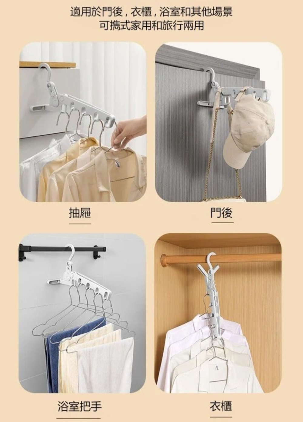 🌞 省空間且多功能:適用於出門旅行、整理家中衣櫃,輕鬆整理、曬乾、收納。您可以隨心尋找合適的地方掛曬,並在不使用時將其折疊放入抽屜、櫃子、浴室或門後。