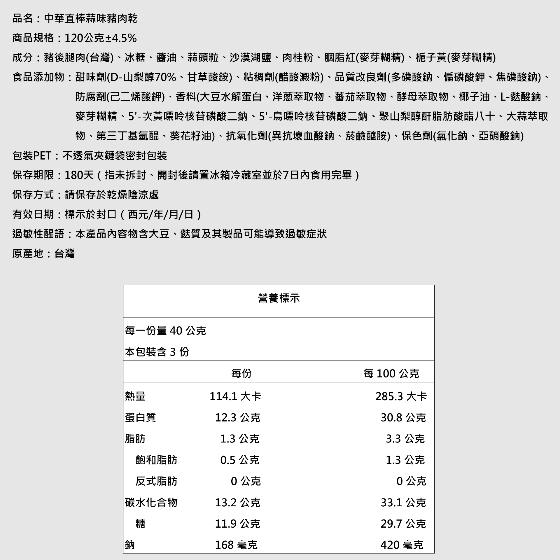 • 製造商:萬味軒食品工業股份有限公司