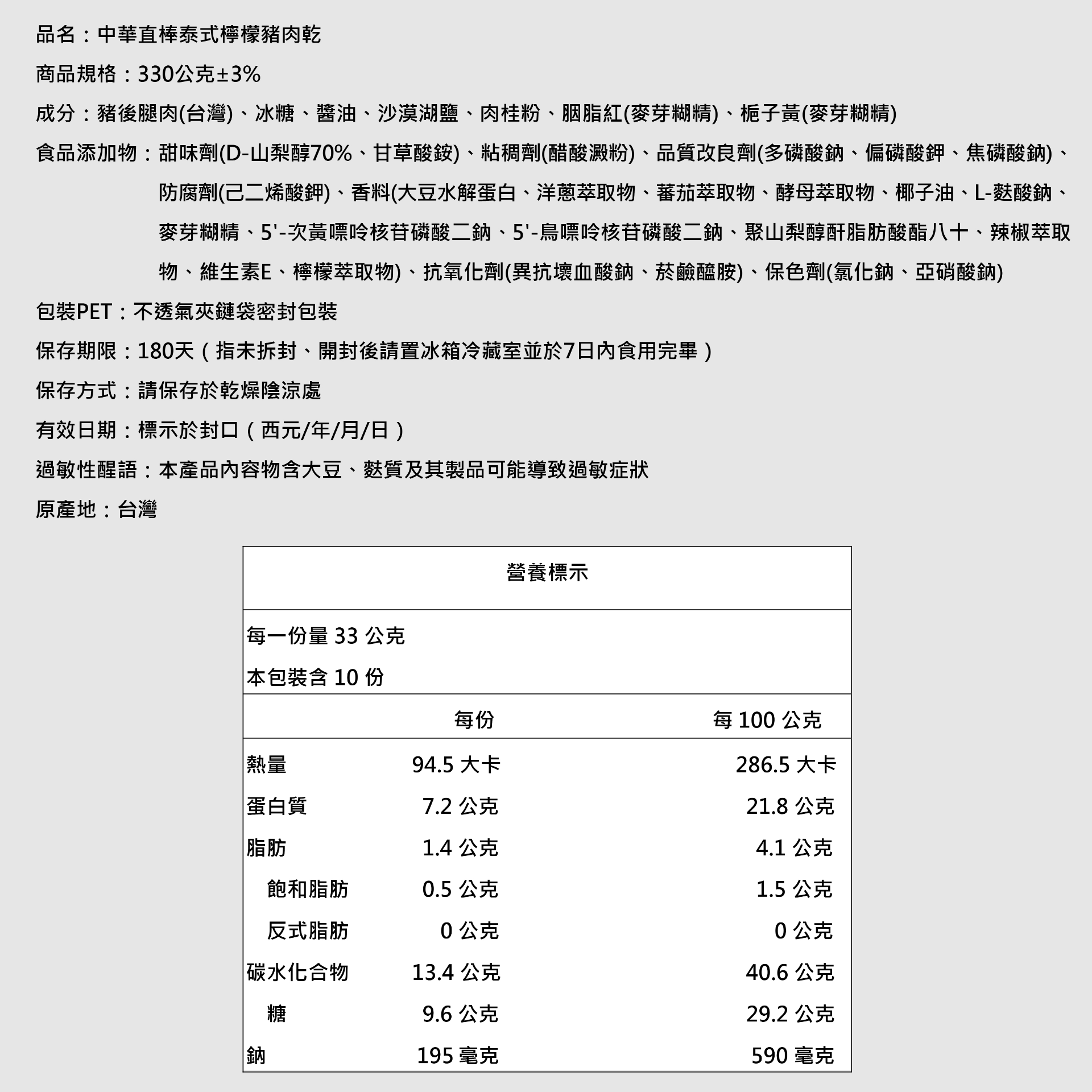 【萬味軒肉乾】中華直棒系列-【泰式檸檬口味單支獨立航空包裝 330g】