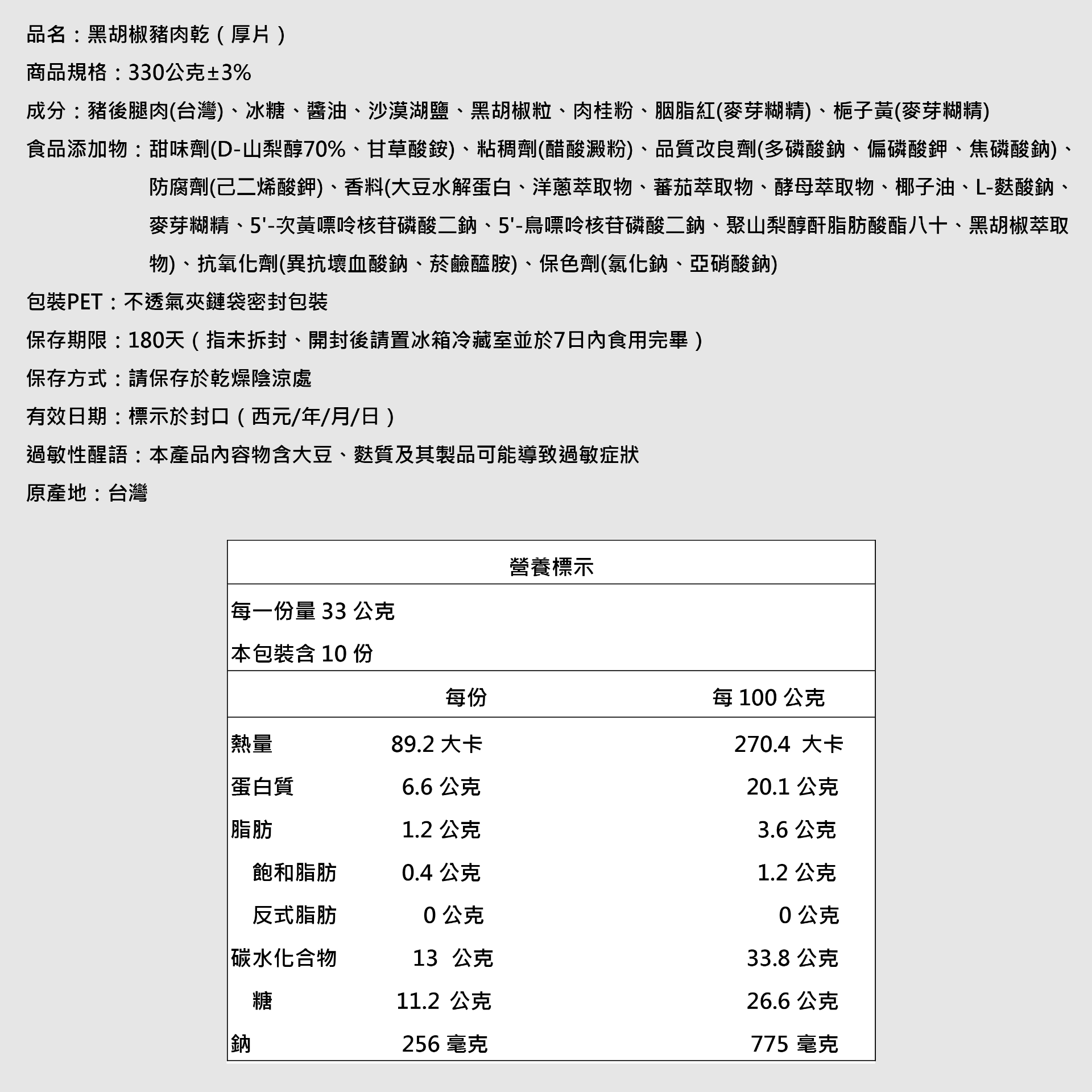 【萬味軒肉乾】厚片肉乾系列-【黑胡椒口味單片獨立航空包裝 330g】