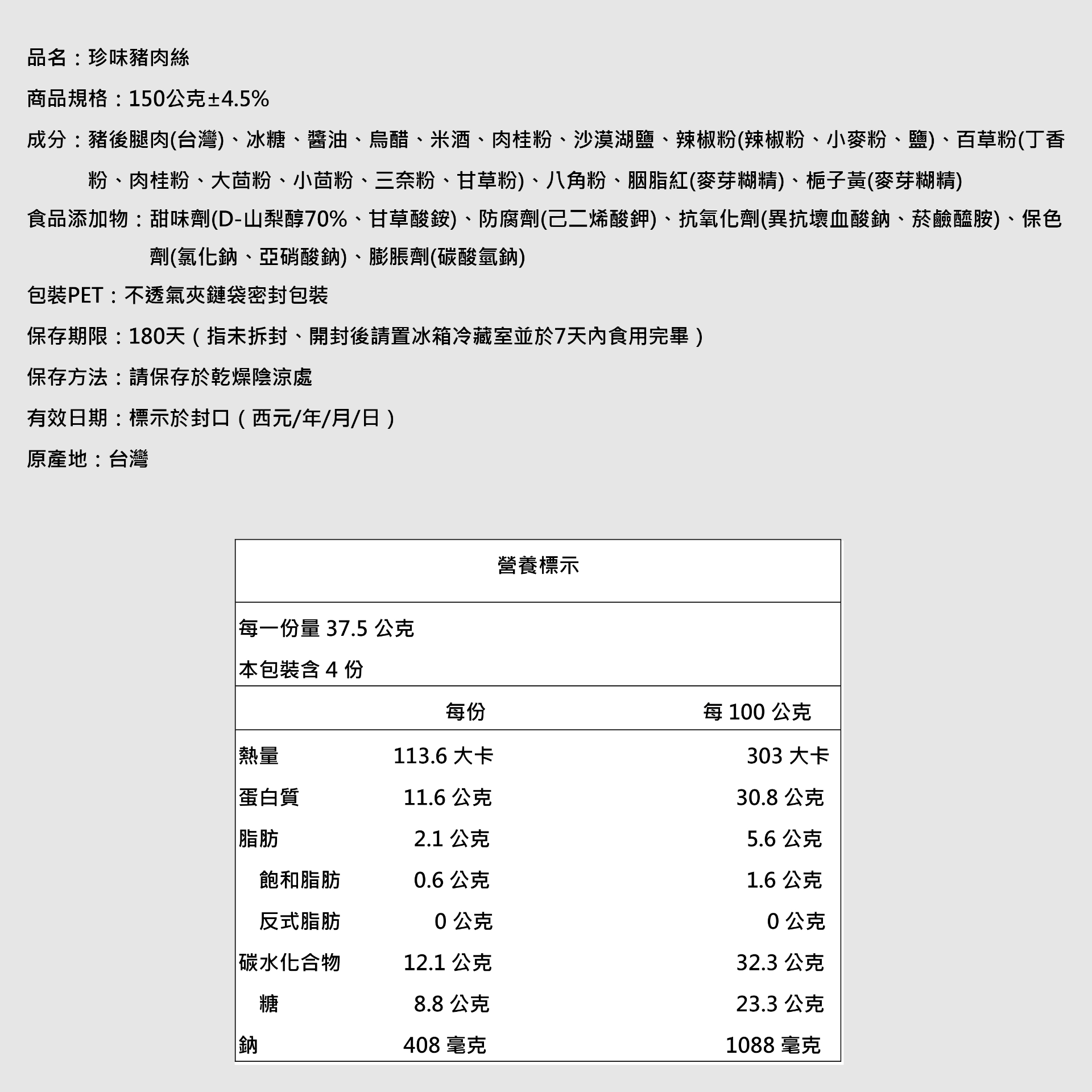 【萬味軒肉乾】經典復刻系列 -【珍味肉絲 150g】