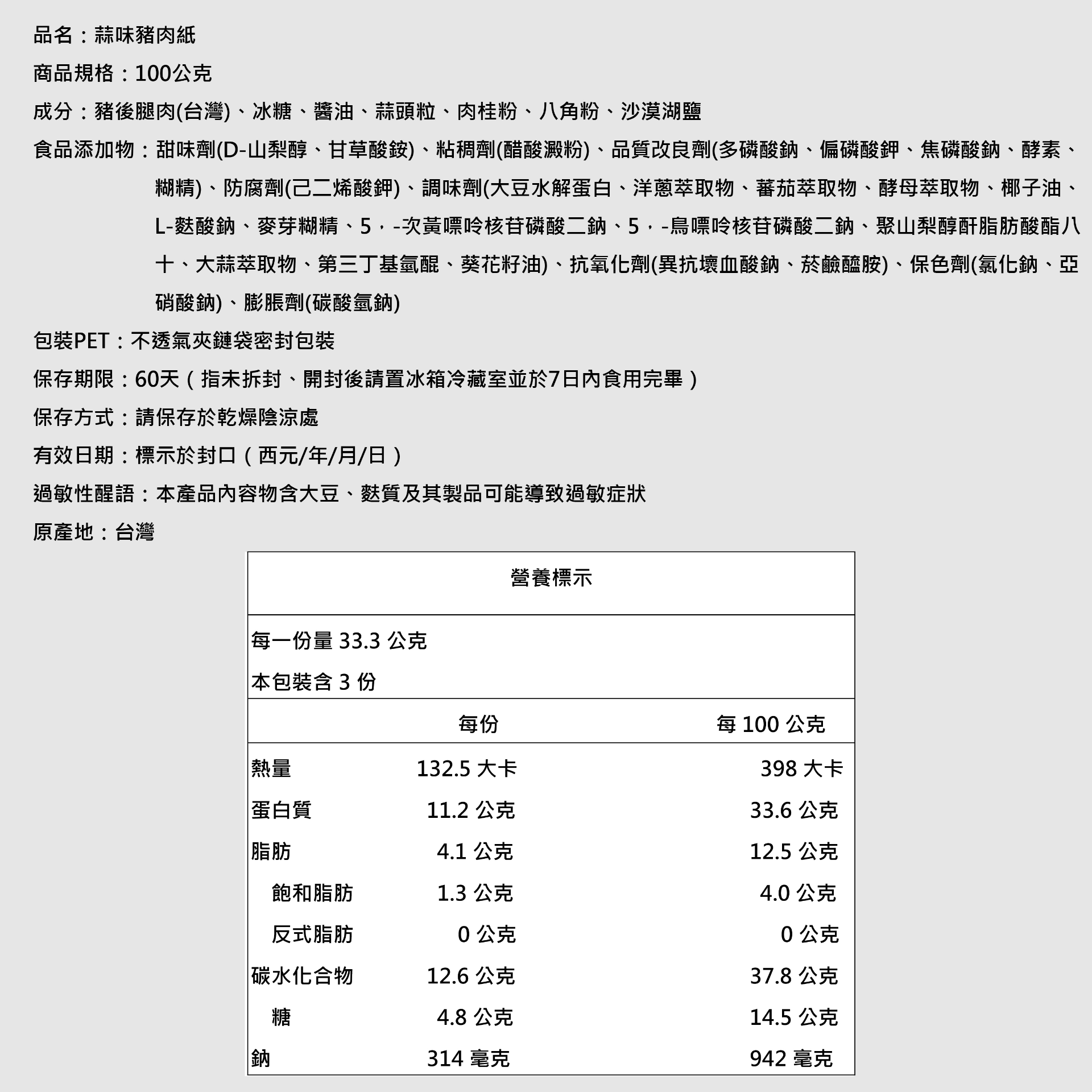 【萬味軒肉乾】經典復刻系列-【蒜味肉紙 100g】