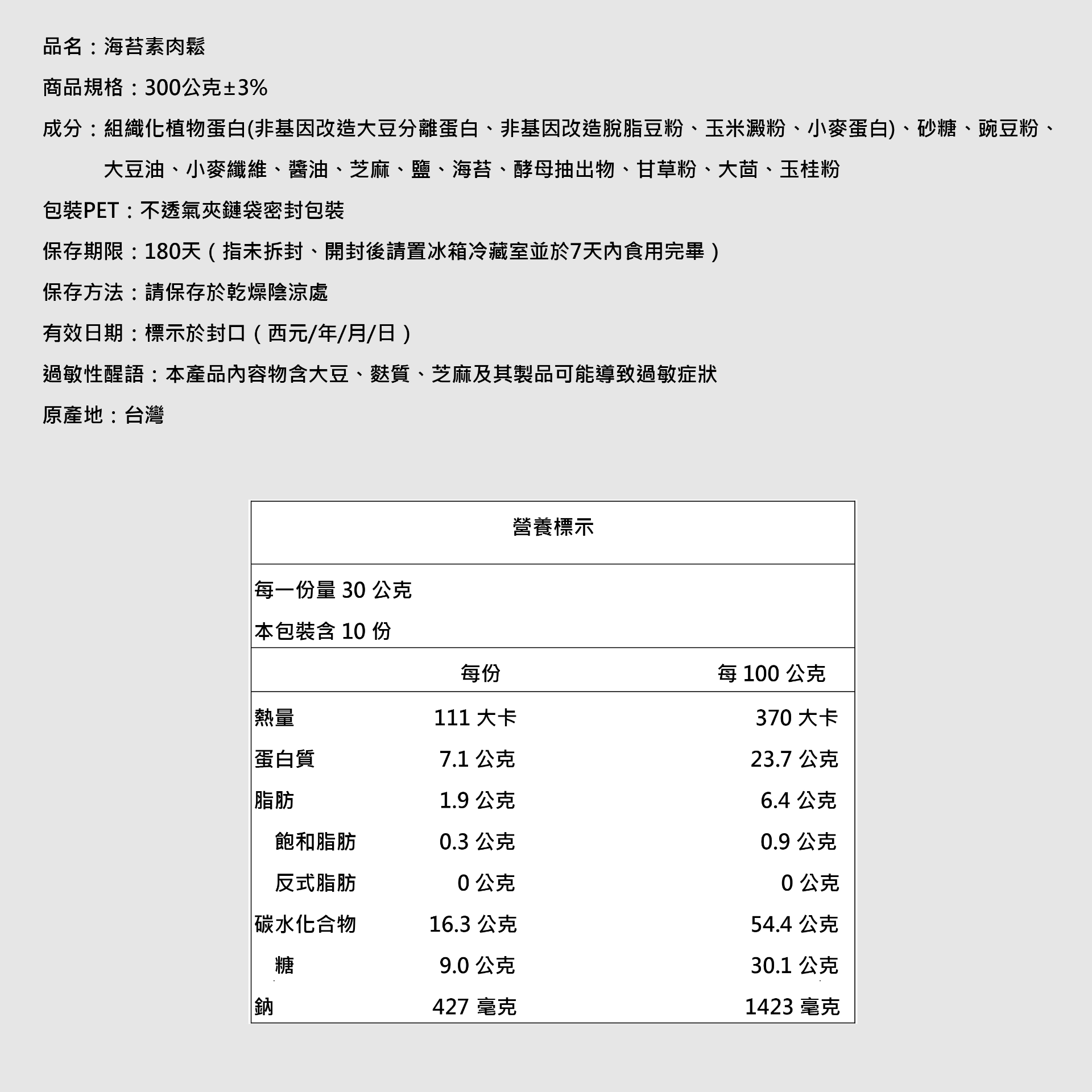 【萬味軒肉乾】素食系列-【海苔素肉鬆 300g】