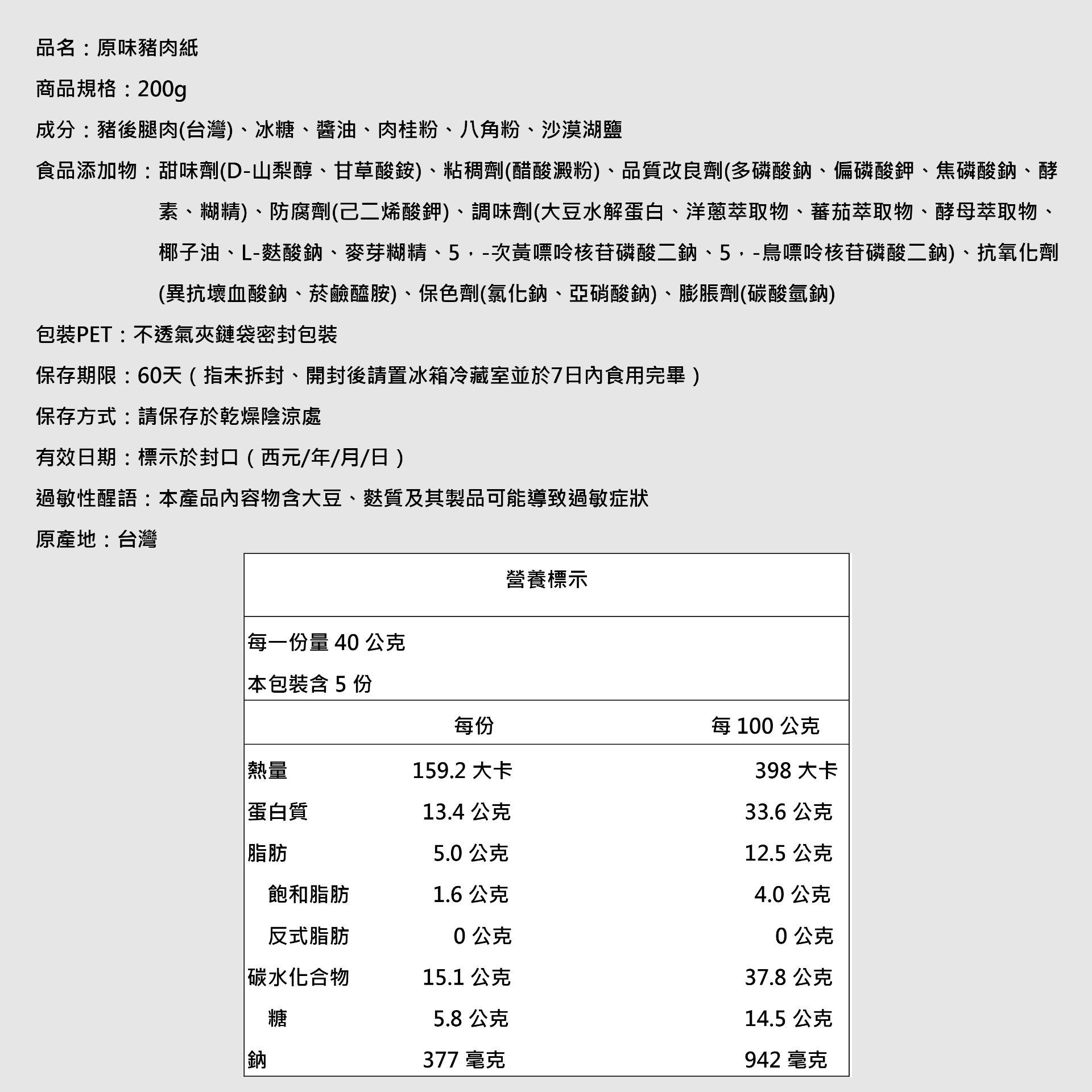 【萬味軒肉乾】經典復刻系列-【原味肉紙 200g】