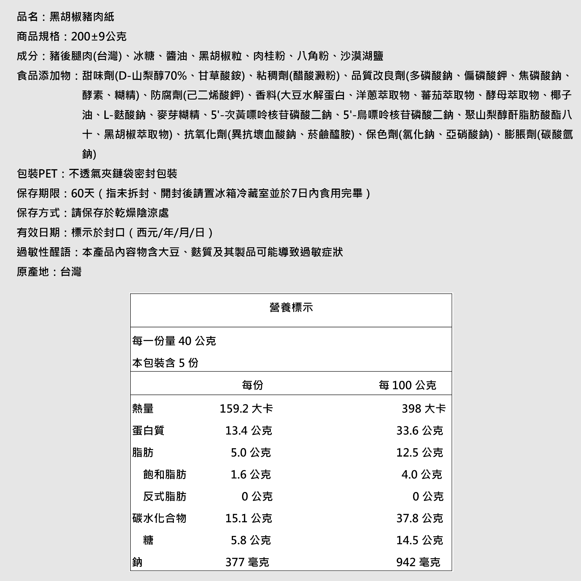 【萬味軒肉乾】經典復刻系列 -【黑胡椒肉紙 200g】