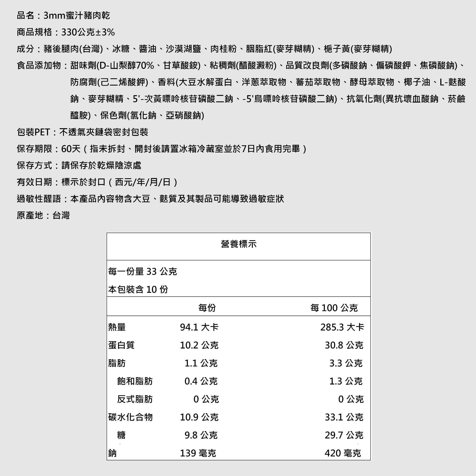 【萬味軒肉乾】經典復刻系列-【3mm薄片肉乾-蜜汁口味 330g】