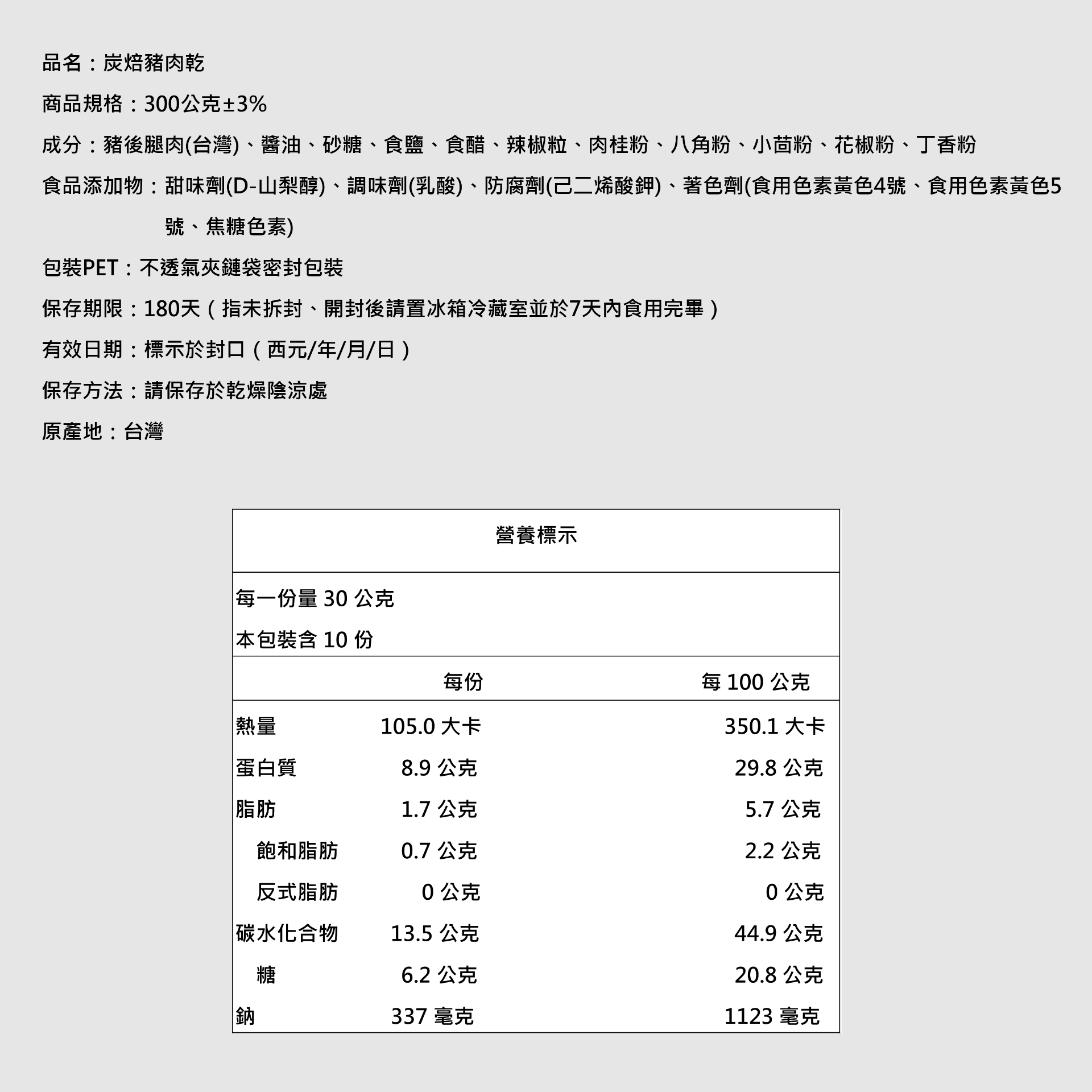 【萬味軒肉乾】經典復刻系列-【炭焙豬肉乾 300g】