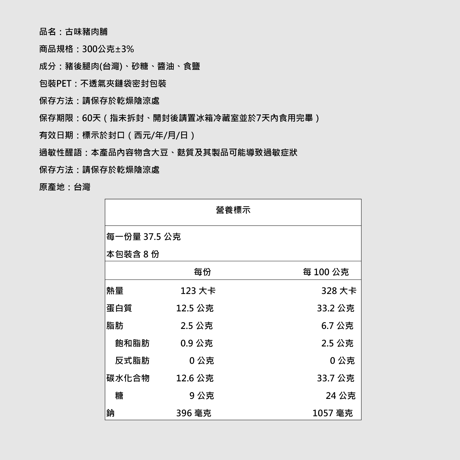 【萬味軒肉乾】經典復刻系列-【古味肉脯 300g】