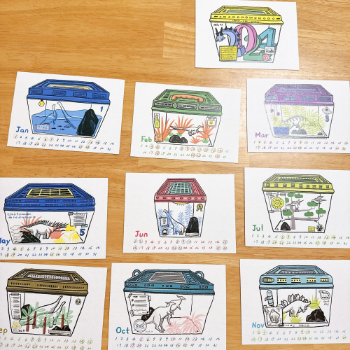 <木木·仕事部屋 Mu Mu Studio> 星期天拯救計畫 2024 桌曆 行事曆 桌曆卡 恐龍 月曆 共13張 卡片