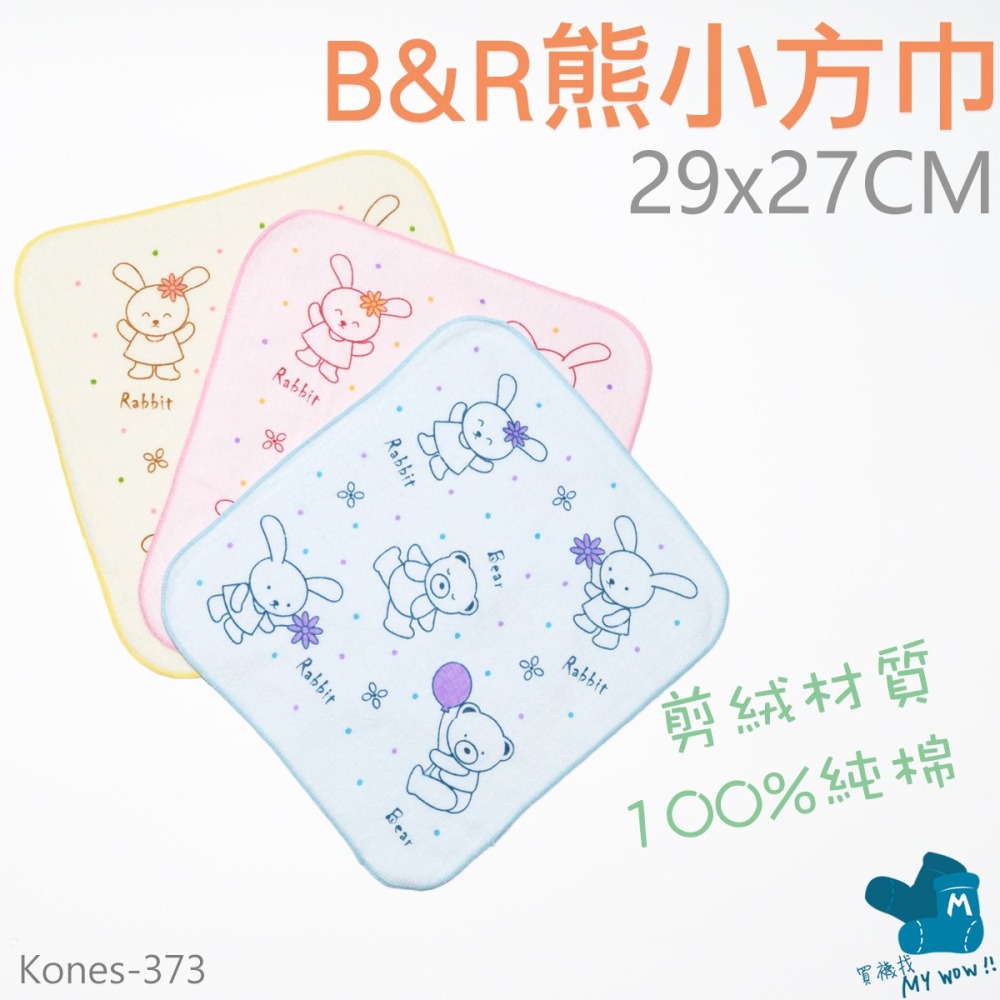 [方巾]兔子小熊 剪絨小方巾 剪絨 純棉 毛巾 吸水 手帕 KONES 珂妮絲 毛巾家族 台灣製 373 麥襪企業社