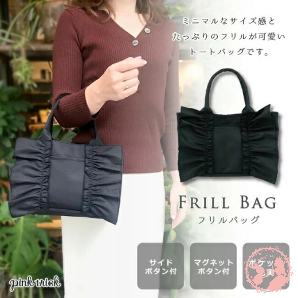 人氣pink trick系列的荷葉邊手提包。