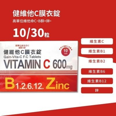 [日安藥局][現貨秒出]健維他C膜衣錠 10/30入 綜合維他命B+C+E+鋅