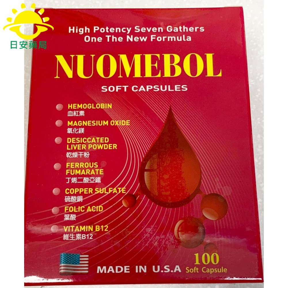 [日安藥局][現貨秒出] 諾美寶軟膠囊(香草味) 100粒 血紅素 葉酸 維生素B12