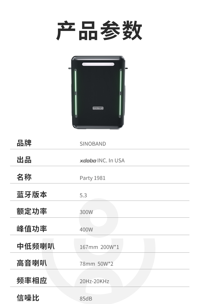 喜多寶xdobo旗下品牌 sinoband party 1981 超大瓦數 很適合當戶外機 有需要戶外使用 可以參考看看歐 商家實測 很適合戶外 尤其是人聲 音樂 分離 很不錯的一款 還支援65w超級快衝 就是比較不適合家裡 太大聲了 峰值可達400w 商家私推