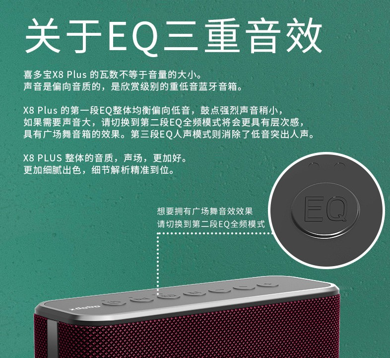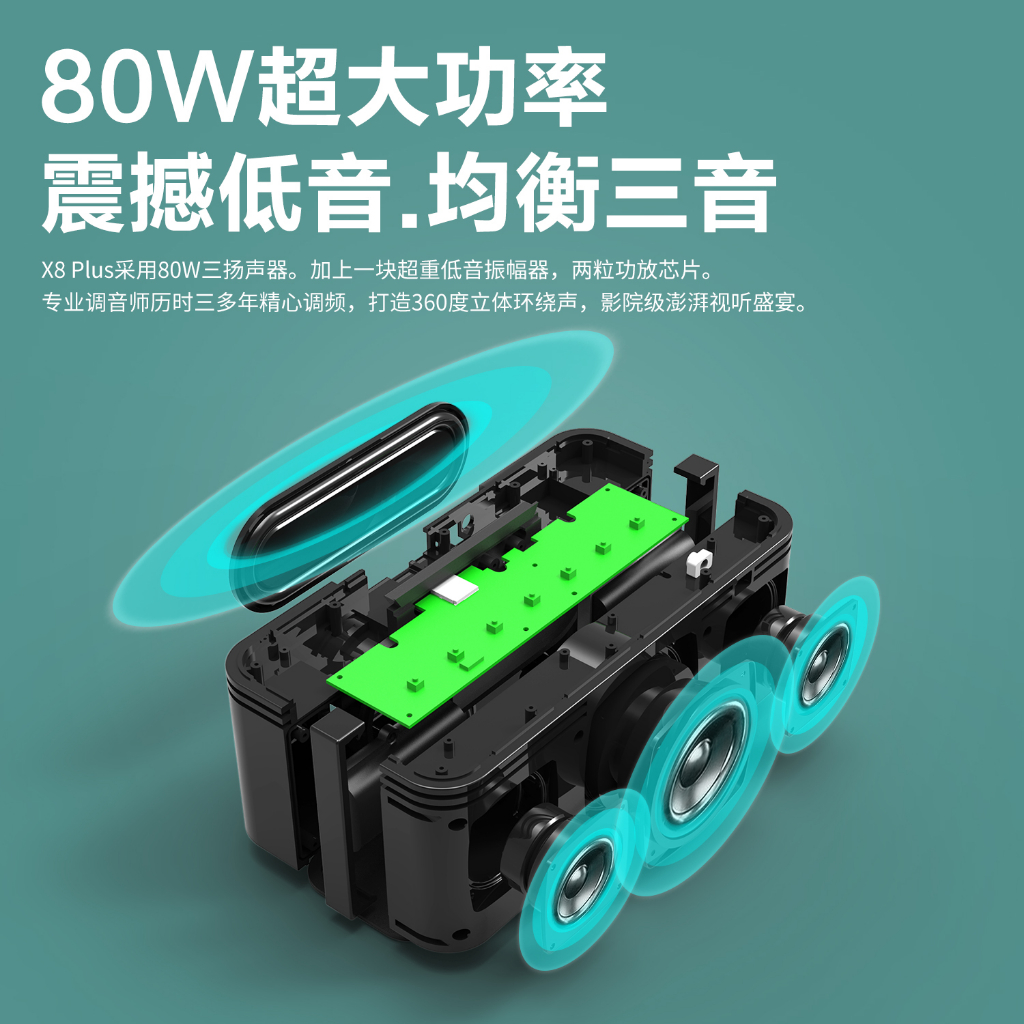 X8plus更強調的是音質 音質很棒 一台夠用 享受更好的音質 2台串聯 沒話說 一樣都支援 無損模式 注重音質的買家 可以用ape flac wav去聽 音質更好 mp3就不用了 那壓縮太厲害 電池容量大 可以聽很久 隨音量大小而定 這時候就可以發揮行動電源的功能了 產品本商家 都會使用 在跟買家說清楚優缺點 要買60w或80w 看買家們的需求 80w產品 黑灰色為主 如需藍紅色 可以預訂 這80w自己用2台實測 整個感覺都出來了 超好的音質 大聲 最大得峰值可達80w 真的值得購買 物超所值 很適合當小型音響 來聽 商家也建議 可以先買40w 和60w 先入手 在升級80w 感受體驗效果更好