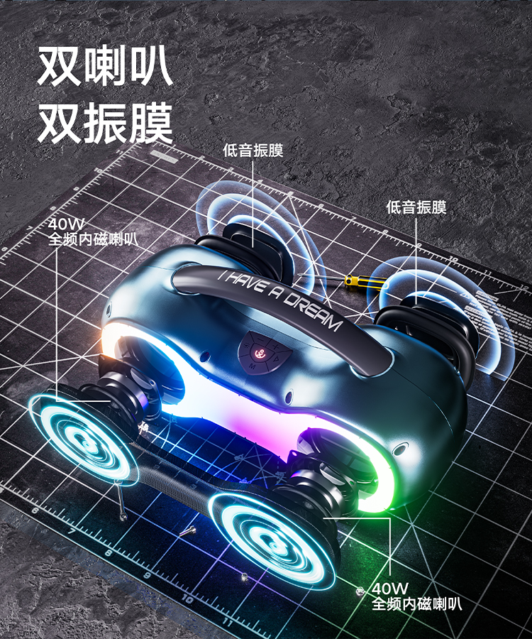 38顆燈珠組成的奇幻炫彩燈帶! 2個大功率2.5吋喇叭!