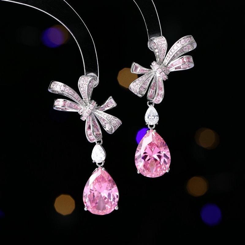 《真愛鍊Cherish》微鑲精工輕奢宴會耳環 蝴蝶結水滴流蘇耳環重工藝高級閃亮鋯石鑲嵌 耳針S925銀針 銀樓飾品