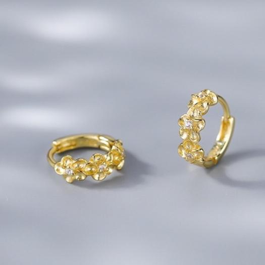 《真愛鍊Cherish 》S925通體純銀耳扣梅花耳圈耳環 三朵花各有一顆鋯石 銀樓銀飾