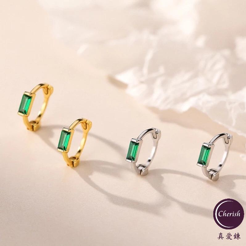 《真愛鍊Cherish 》S925通體純銀耳扣方形鋯石耳圈耳環 圈圈耳環耳扣耳環 銀樓銀飾