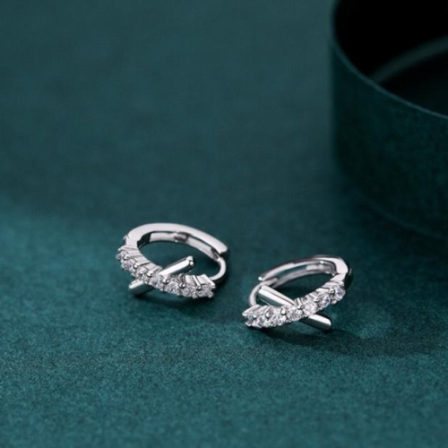 《真愛鍊Cherish 》S925通體純銀耳扣耳環耳圈 X字母微鑲鋯石 耳扣耳圈圈圈耳環 銀樓銀飾