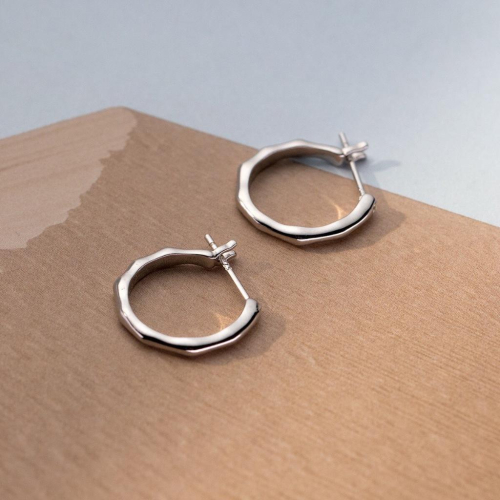 《真愛鍊Cherish 》S925通體純銀耳扣耳環 波浪厚實切面時尚設計 耳圈圈圈耳環 通體純銀耳圈 銀樓銀飾