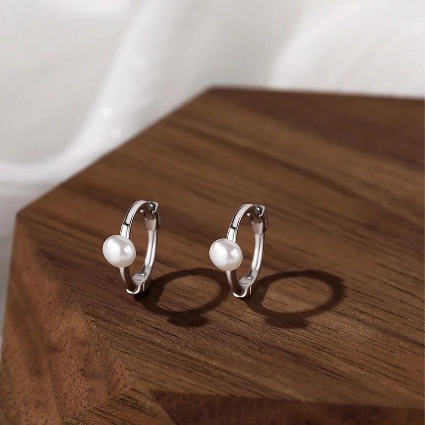 《真愛鍊Cherish 》S999通體足銀天然淡水珠耳扣耳環 圈圈耳環耳圈 小巧有型 銀樓銀飾