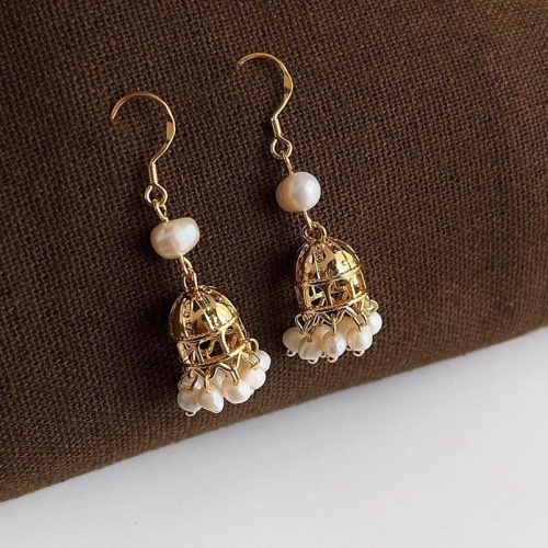 《真愛鍊Cherish》天然珍珠流蘇耳環耳鉤S925純銀耳鉤 天然淡水珠不規則紋路米珠 風鈴樣式耳環