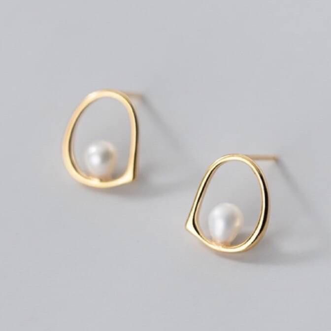 《真愛鍊Cherish 》S925通體純銀耳環 天然淡水珠 氣質鏤空幾何造型 天然珍珠 氣質 上班日常配戴
