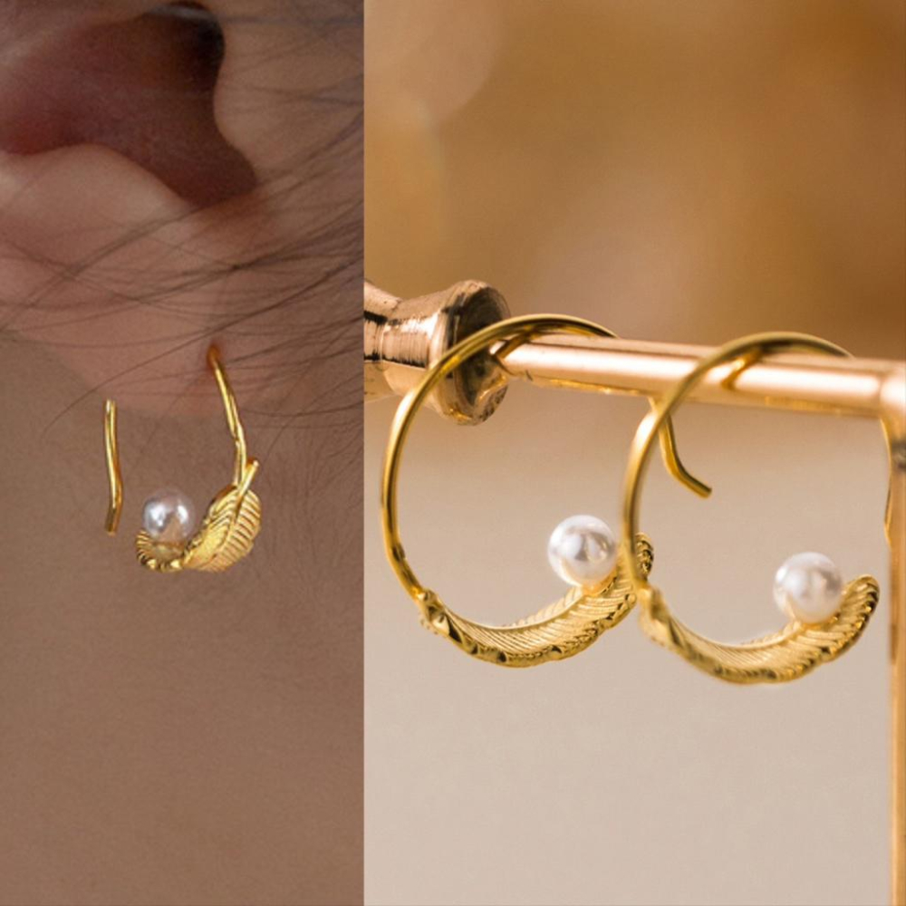 《真愛鍊Cherish 》S925通體純銀耳環 C造型的耳環羽毛樣式 時尚有造型 耳鉤耳環 圈圈耳環