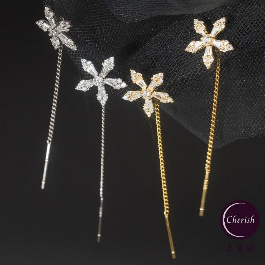 《真愛鍊Cherish》S925通體純銀耳環耳線款 微鑲鋯石花朵造型流蘇 時尚流行 韓版 清新
