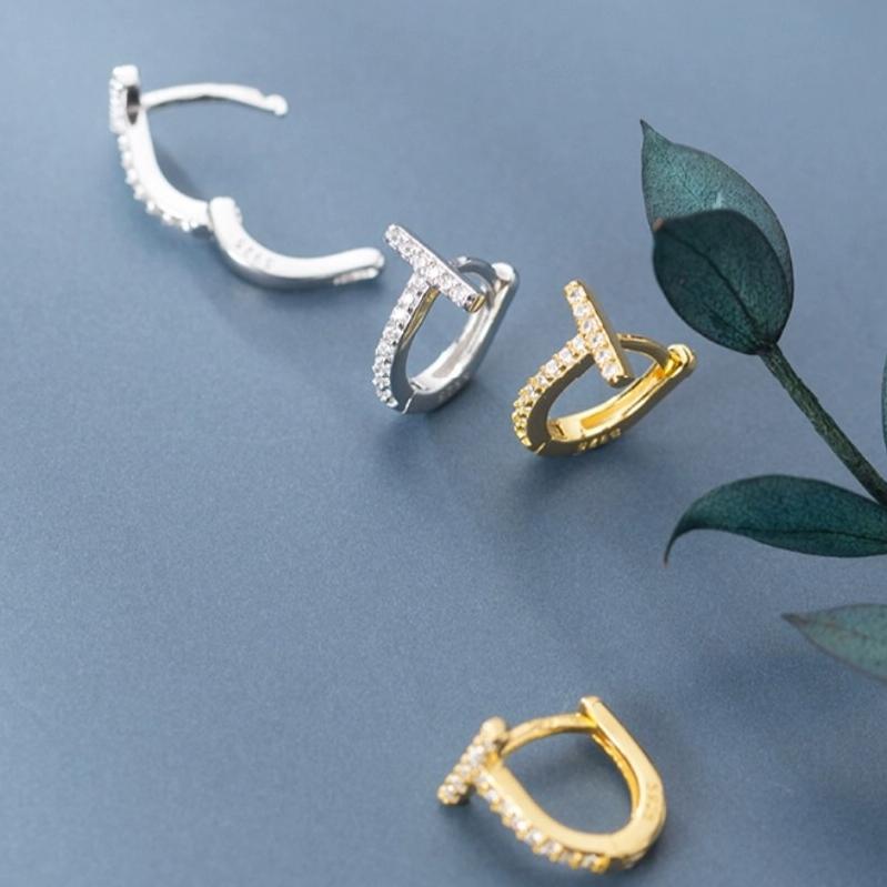 《真愛鍊Cherish 》S925通體純銀耳扣耳環 T字圈圈耳環 鑽圈耳環 耳扣耳環 鑲鑽鋯石耳環 韓版耳圈