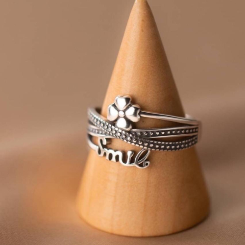 《真愛鍊Cherish 》S925通體純銀戒指 花朵造型微笑Smile 泰銀色戒指 特色十足
