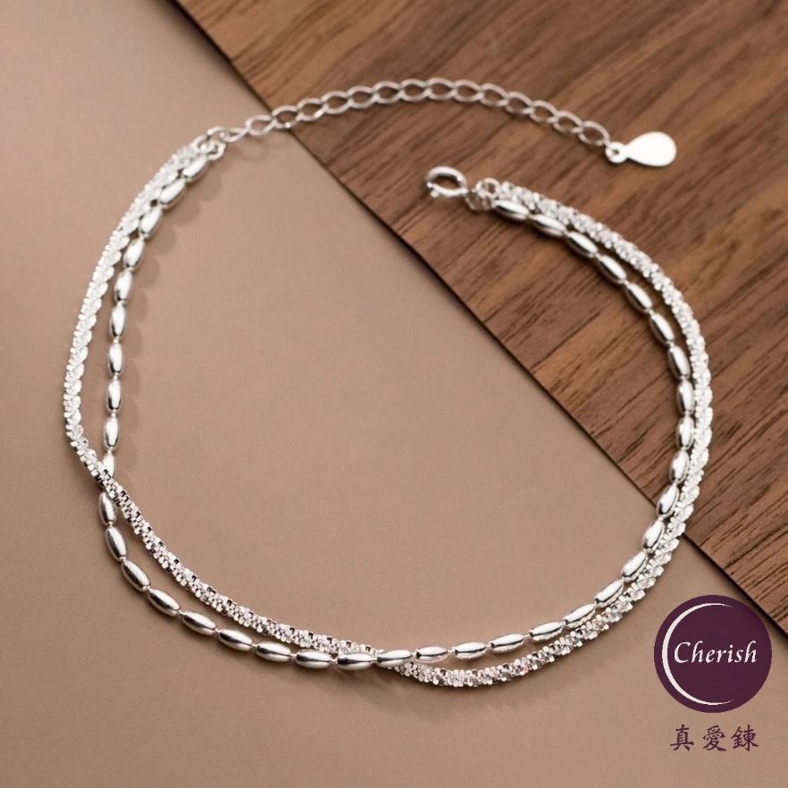《真愛鍊Cherish 》S925通體純銀腳鍊腳鏈 滿天星搭配豆豆雙層造型 迷人的足踝光彩 銀樓銀飾