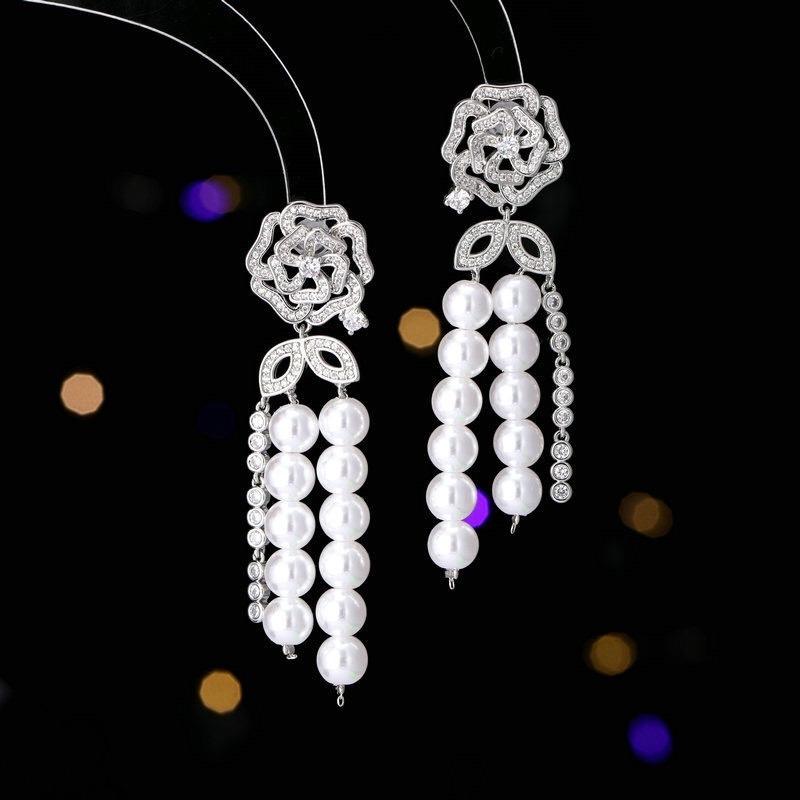 《真愛鍊Cherish》微鑲精工山茶花銀針造型耳環 流蘇搭配貝珠輕奢大器造型 高級閃亮鋯石鑲嵌 耳針S925銀針