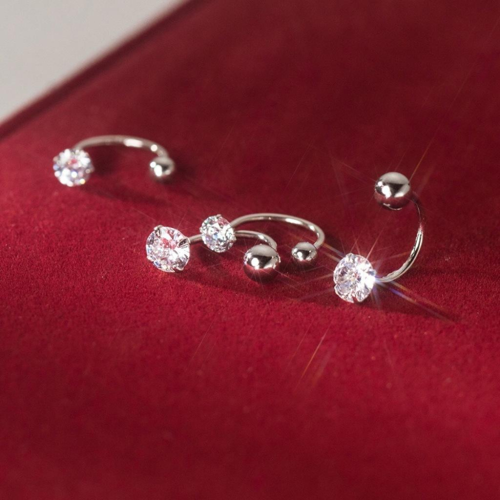 《真愛鍊Cherish 》S925通體純銀轉珠鎖珠耳環 單顆閃亮鋯石螺絲螺紋耳環 銀樓銀飾