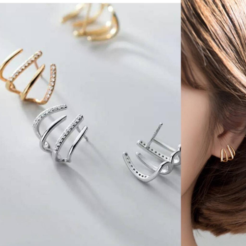 《真愛鍊Cherish 》S925通體純銀耳環 微鑲鋯石線條爪型 包覆耳垂網紅款 精緻個性 銀樓銀飾