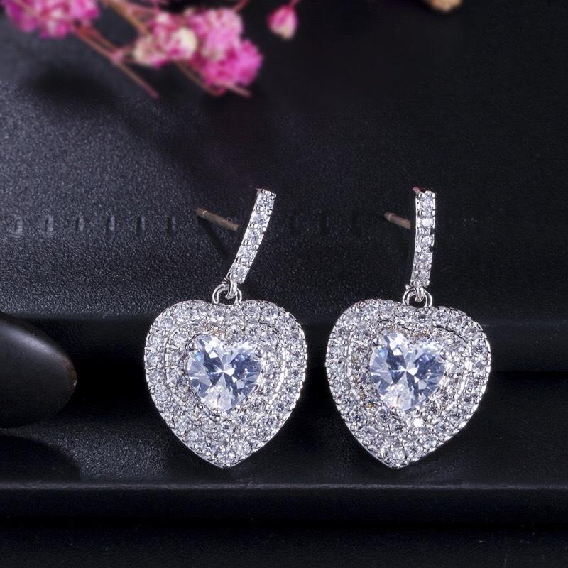 《真愛鍊Cherish》微鑲滿鋯石精緻工藝耳環 耳針S925銀針愛心鋯石重工藝耳環 歐美大器時尚珠寶鑲工