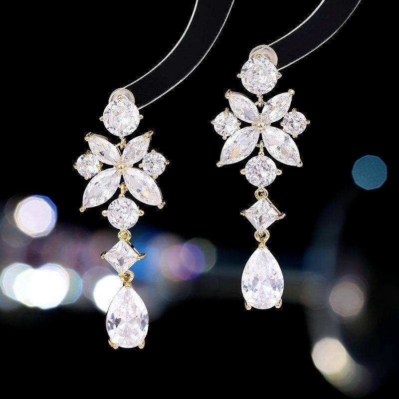 《真愛鍊Cherish》微鑲精工鋯石設計款耳環 耳針S925銀針花朵造型水滴流蘇 精緻耳環 韓版耳環 歐美耳環