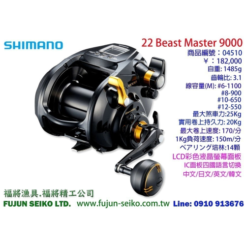 【福將漁具】Shimano電動捲線器 22 Beast Master 9000