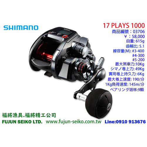 【福將漁具】Shimano電動捲線器 PLAYS 1000 / 800 / 600