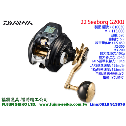 【福將漁具】Daiwa電動捲線器 SEABORG G200J / G200JL左手捲