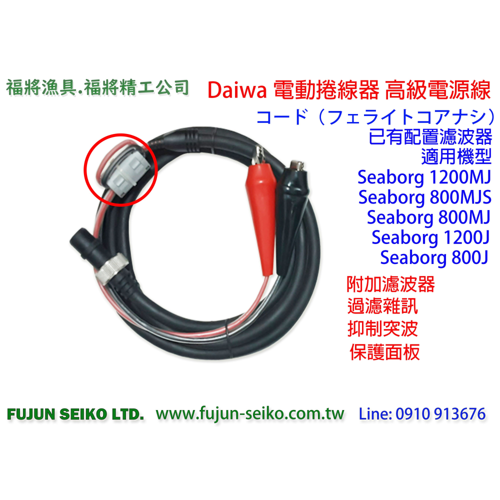 【福將漁具】Daiwa電動捲線器 1200MJ/J, 800MJ/J 電源線,附濾波器