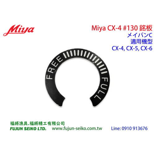 【福將漁具】Miya電動捲線器 CX-4 #130 右側蓋銘版