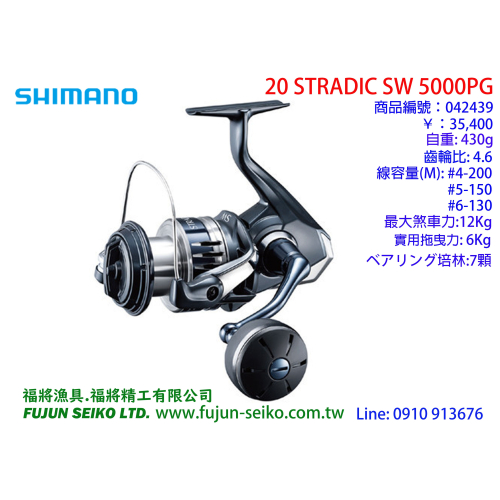 【福將漁具】Shimano紡車捲線器 20 STRADIC SW 5000PG 【特價出清】