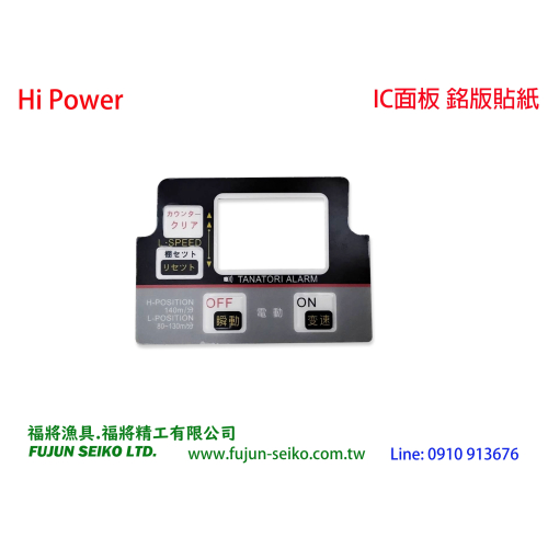 【福將漁具】Hi Power電動捲線器 IC面板銘版貼紙